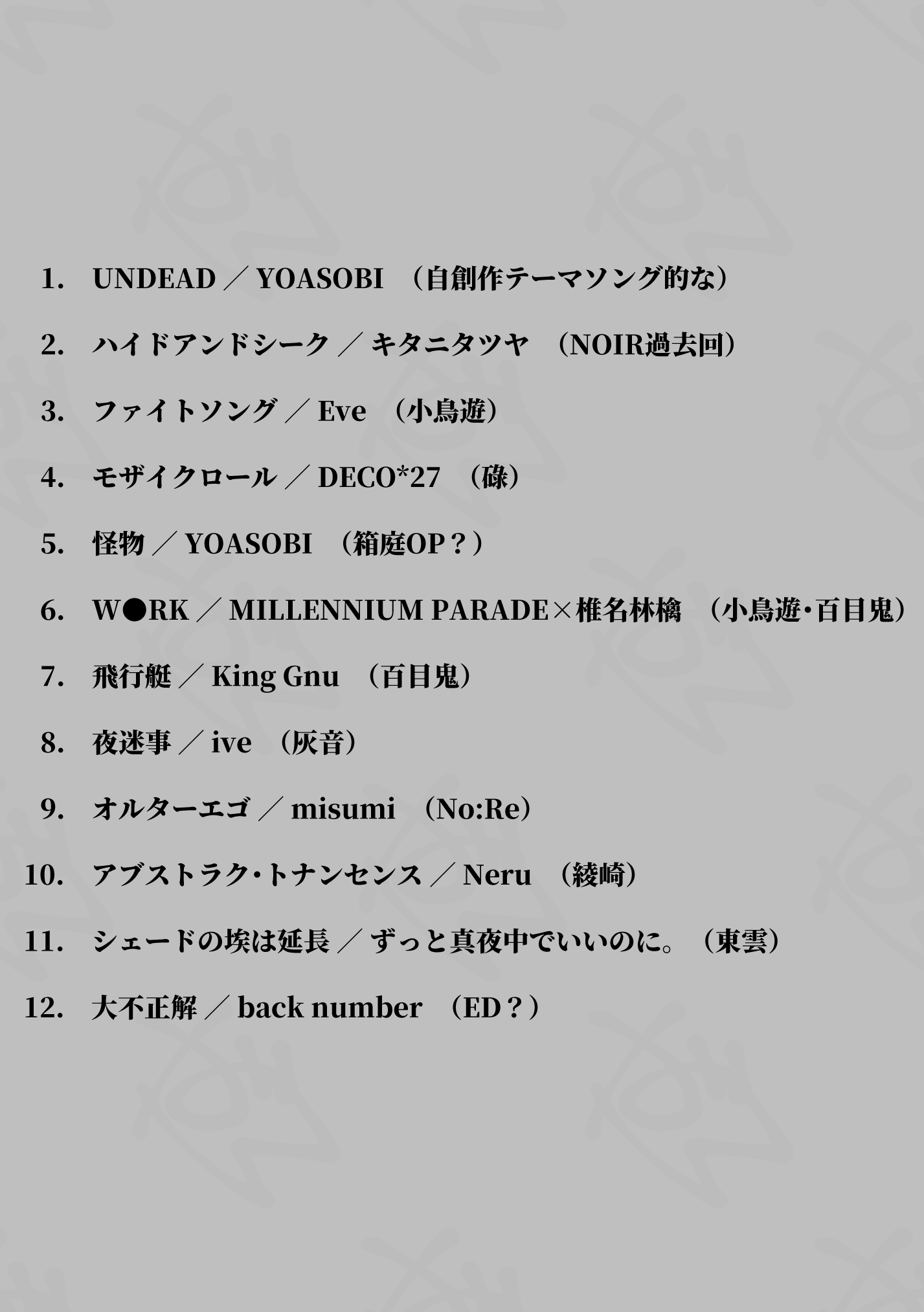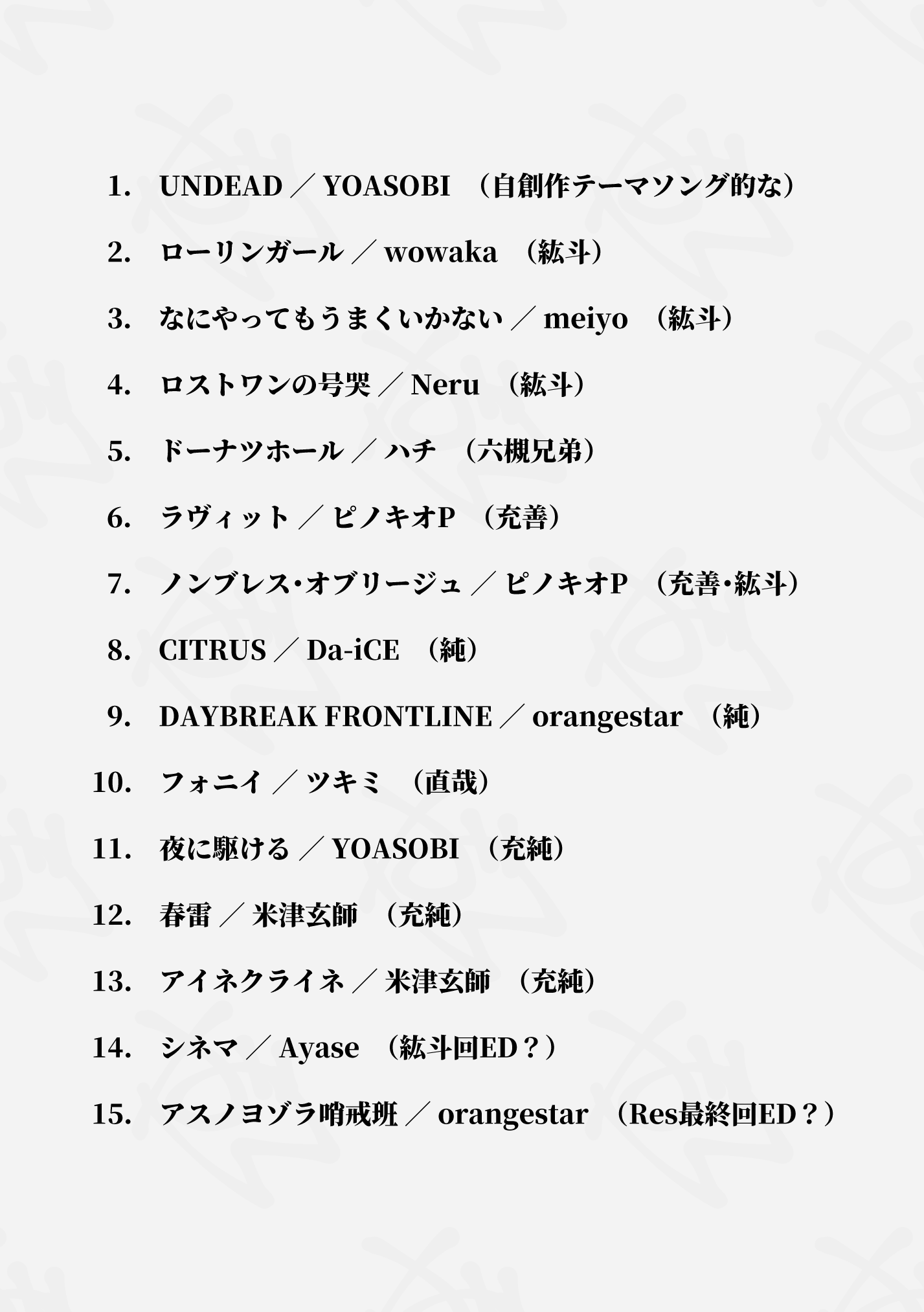 うちの子イメソンリストを整理したので最新版をぺたり。前のもこうやっておけばよかったな~